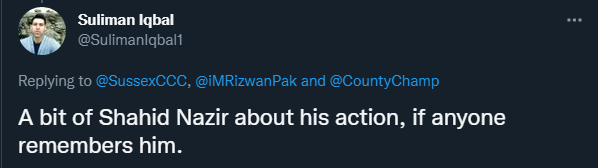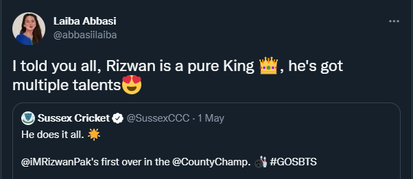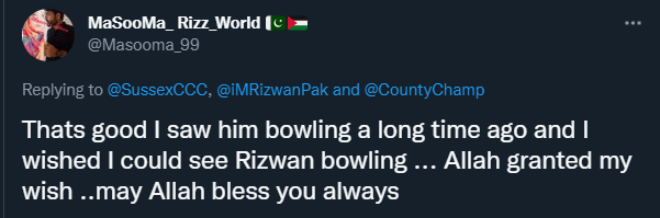 سسیکس کاؤنٹی کرکٹ کلب کی جانب سے کھیلتے ہوئے محمد رضوان نے سنیچر کو بولنگ کی تو ان کا پہلا اوور خصوصی طور پر توجہ کا مرکز رہا۔