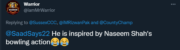 دیگر بولرز کے انداز سے محمد رضوان کا تقابل شروع ہوا تو کچھ شائقین کرکٹ نے خیال پیش کیا کہ رضوان نسیم شاہ کے بولنگ ایکشن سے متاثر ہیں۔