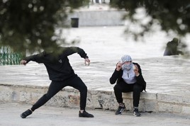 فلسطینیوں کی جانب سے پولیس پر پتھراؤ کیا گیا جس کے جواب میں انہوں نے سٹن گرنیڈز کا استعمال کیا۔