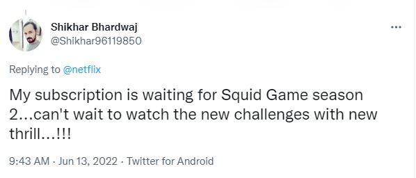 شیکھر نامی ایک صارف کہتے ہیں ’میری سبسکرپشن سیزن 2 کا انتظار کر رہی ہے۔ نئے چیلنج، نئی سنسنی دیکھنے کا انتظار نہیں ہورہا۔‘