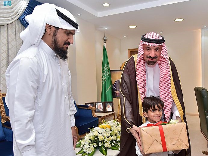 شہزادہ عبدالعزیز بن جلوی نے بچے کو تحفہ بھی دیا ہے(فوٹو ایس پی اے)
