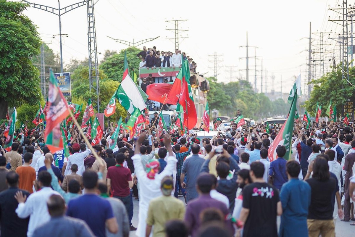 عمران خان کے مطابق ’سازش کرنے والوں میں ذہن میں نہیں تھا کہ عوام اس طرح سڑکوں پر نکل آئیں گے۔‘ (فوٹو: ٹوئٹر تحریک انصاف)