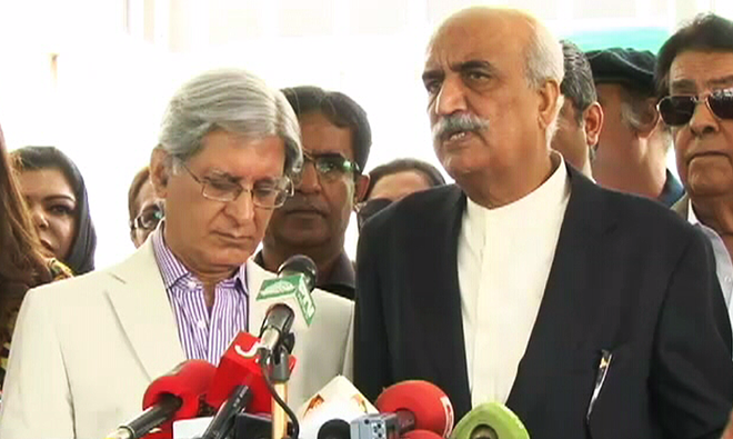 اسلام آباد ...قومی اسمبلی میں اپوزیشن لیڈر خورشید شاہ نے سینیٹر اعتزاز احسن کے ہمراہ پریس کانفرنس کرتے ہوئے کہا کہ پانامہ کیس کی تحقیقات کے لئے جے آئی ٹی کو نہیں مناتے۔ جے آئی ٹی بنانی ہے تو سپریم کورٹ کے 3 یا ہائی کورٹ کے 4 ججوں کی بنائی جائے۔وزیراعظم سے استعفیٰ حاصل کرنے کے لئے پیپلز پارٹی نئی حکمت عملی تیار کرے گی۔میڈیا سے گفتگو کرتے ہوئے انہوں نے کہا کہ سپریم کورٹ کے 2 ججوںنے واضح اور دو ٹوک الفاظ میں نواز شریف کے خلاف فیصلہ دیا جبکہ 3 ججوں نے تردید نہیں کی۔ ایک 19 گریڈ کے افسر کو کہا گیا ہے کہ تم اپنے مالک کی ، جس سے تم تنخواہ لیتے ہو، اس سے تفتیش کرو، یہ کھوکھلی تفتیش ہوگی۔ جے آئی ٹی بڑی شرم کی بات ہے۔ انہوں نے کہا کہ ہمیشہ یہ طعنہ دیا گیا کہ آپ لوگ نواز شریف کو سہارا دے رہے ہیں لیکن درحقیقت ہمیشہ جمہوریت اور ادراروں کا ساتھ دیا۔خورشید شاہ نے کہا کہ یہ نہیں چاہتے کہ حکومت ختم ہو یہ نواز شریف پر ہے کہ وہ پارلیمنٹ کو بچانا چاہتے ہیں یا اپنے کردار کی جنگ لڑنا چاہتے ہیں۔سینیٹر اعتزاز احسن نے کہا کہ مریم نواز جو سارے مسئلہ کا منبع ہیں انہیں جے آئی ٹی سے پہلے ہی جے آئی ٹی سے فارغ کردیا گیا ۔ تاریخ کا حصہ ہے کہ سپریم کورٹ شریف خاندان پر نرم ہاتھ رکھتی ہے۔انہوں نے کہاکہ فیصلے میں موجود مواد نوازشریف کو نااہل قرار دینے کےلئے کافی ہے۔