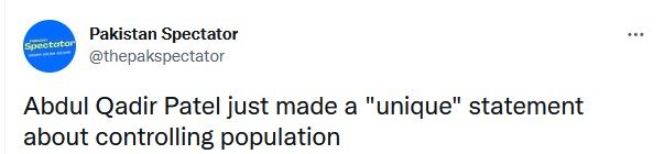 #Pakistan Federal Minister for Health Abdul Qadir Patel’s out-of-the-box advice to people wanting more children, during an event said that if couples want to have more children,they can go to a country where there are fewer Muslims' so that the #Muslim population increases there. pic.twitter.com/dqO4Ch0Jjv