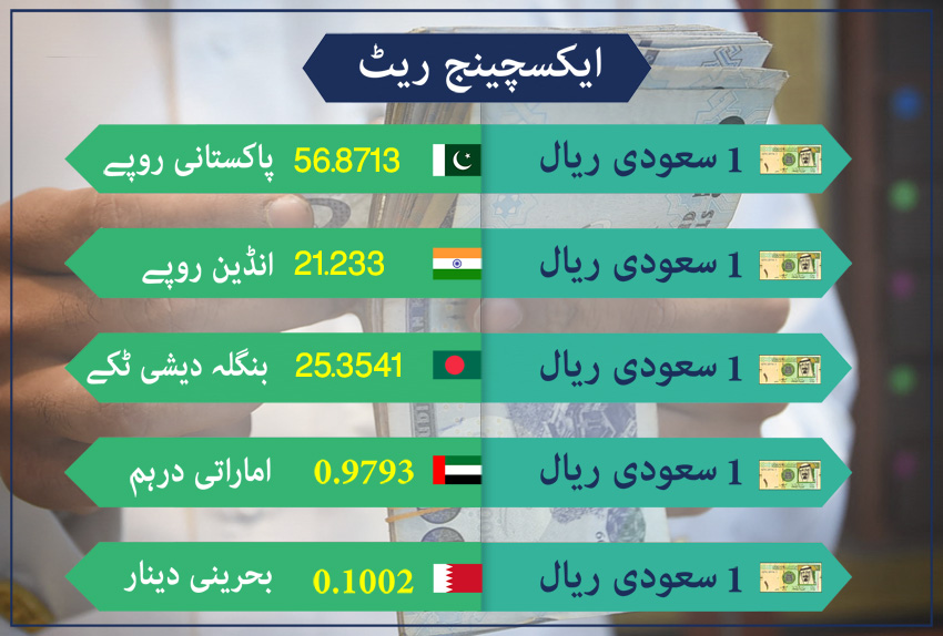 سعودی عرب کے مختلف ٹرانزیکشن سنٹرز کے مطابق پیر 15 اگست 2022 کو سعودی ریال کا ایکسچینج ریٹ ذیل میں درج کیا گیا ہے۔