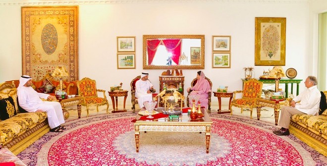 The Ambassador of UAE, H.E. Mr. Hamad Obaid Ibrahim Salim Al Zaabi and Deputy Ambassador H.E Mr. Rashid Ali met PMLN Vice President Maryam Nawaz Sharif in Jati Umrah today. pic.twitter.com/0z4ONap1Ag