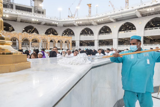 ’صحن مطاف کی صفائی اوراس کی سینیٹائزنگ کے لیے خصوصی آلات فراہم کیے گئے ہیں جبکہ مسعی کی مستقل بنیادوں پردھلائی اور سینیٹائزنگ کےلیے بھی آلات اور کارکنوں کی ٹیم موجود ہے‘۔