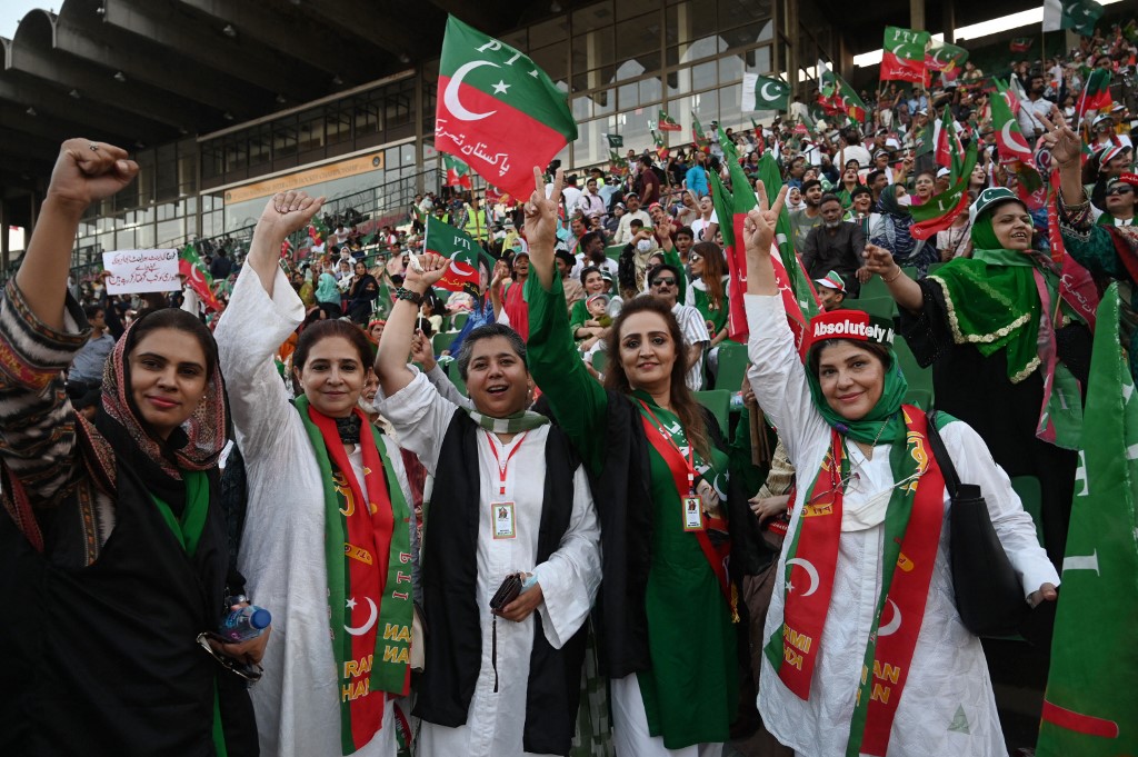سیلاب کے بعد بھی عمران خان نے بڑے شہروں میں جلسے جاری رکھے۔(فائل فوٹو: اے ایف پی)