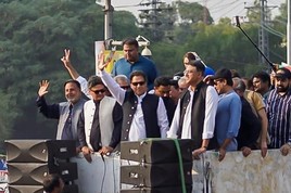 سوا تین بجے عمران خان خود پہنچے تو اس وقت لبرٹی چوک آدھا بھر چکا تھا۔ (فوٹو: اے ایف پی)