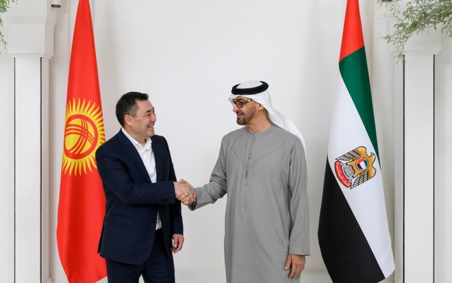 متحدہ عرب امارات کے صدر شیخ محمد بن زاید آل نہیان اور کرغیزستان کے صدر صادر جیاروف نے پیر کو ابوظبی کے الشاطی محل میں ملاقات کی ہے۔