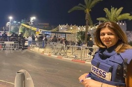 الجزیرہ چینل سے وابستہ فلسطینی نژاد امریکی صحافی شیریں ابو عاقلہ 11 مئی کو اس وقت گولی کا نشانہ بن گئی تھیں جب وہ مغربی کنارے میں اسرائیلی فوج کے جینن کیمپ پر آپریشن کی کوریج کر رہی تھیں۔