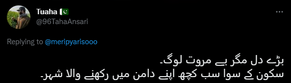 طحہ انصاری نے شہر میں بدامنی کی نشاندہی کی تو لکھا کہ ’سکون کے سوا سب کچھ اپنے دامن میں رکھنے والا شہر۔‘