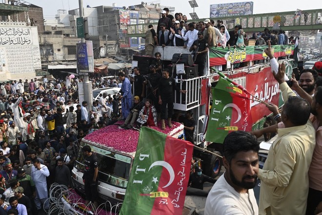 لانگ مارچ کے دوران خاص طور پر جنوبی پنجاب سے تعلق رکھنے والے موجودہ اور سابقہ وزرا فرنٹ پر نظر نہیں آئے (فائل فوٹو: اے ایف پی)