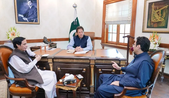 فواد چودھری کے مطابق ’منگل کو وزیراعلٰی پنجاب چودھری پرویز الٰہی عمران خان سے ملاقات کریں گے‘ (فائل فوٹو: مونس الٰہی ٹوئٹر)