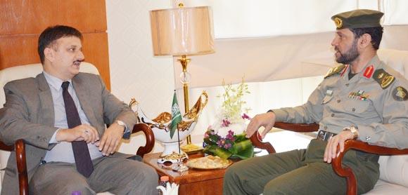مدینہ منورہ.... مدینہ منورہ ریجن میں محکمہ پاسپورٹ کے سربراہ جنرل خالد بن محمد الہویش سے پاکستانی قونصلیٹ کے ویلفیئر قونصلر مقصود عباس نے ملاقات کی۔ محکمہ پاسپورٹ کے صدر دفتر میں ہونے والی ملاقات کے دوران شاہی مہلت سے فائدہ اٹھانے میں حائل رکاوٹوں کے متعلق گفتگو ہوئی۔وطن واپس جانے کے خواہشمند پاکستانی تارکین کو پیش کی جانے والی سہولتوںکا جائزہ لیا گیا۔ ملاقات کے دوران اس بات پر زور دیا گیا کہ غیر قانونی تارکین سے پاک وطن مہم کے دوران پاکستانی قونصلیٹ کا نمائندہ ہر وقت موجود رہنا چاہئے تاکہ تارکین کے معاملات انجام دینے میں حائل رکاوٹوں کو فوری طور پر دور کیا جاسکے۔ملاقات کے اختتام پر ویلفیئر قونصلر مقصود باسط نے جنرل خالد الہویش اور محکمہ پاسپورٹ کا شکریہ ادا کیا جن کی محنت اور لگن سے پاکستانی تارکین وطن کی واپسی ممکن ہورہی ہے۔