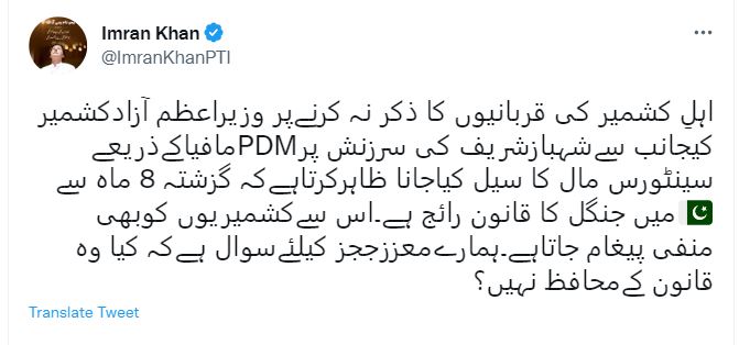 اسی طرح پی ٹی آئی رہنما فواد چوہدری نے بھی ٹویٹ کرتے ہوئے الزام عائد کیا کہ کہ ’وزیراعظم آزاد کشمیر وزیراعظم شہباز شریف کی تقریر کے دوران کھڑے ہوئے اور کشمیر پاکستان کے کمزور موقف پر احتجاج ریکارڈ کروایا۔‘