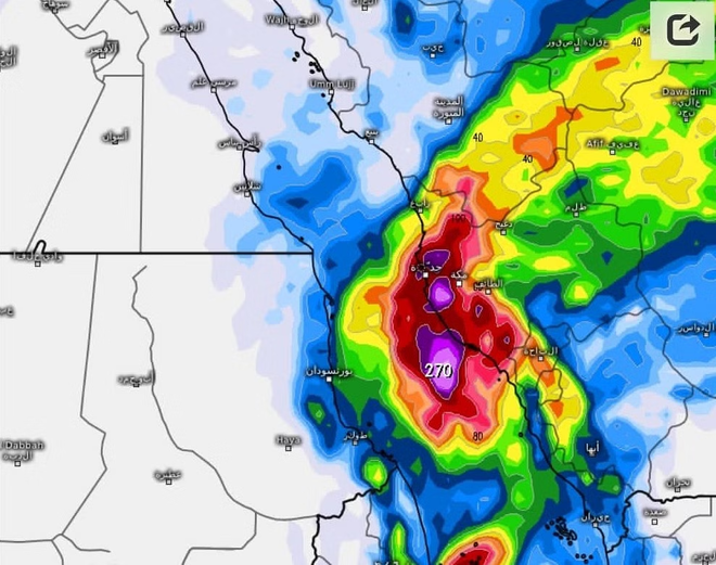 انہوں نے کہا ہے کہ ’موسمی نقشوں کے مطالعے سے معلوم ہوتا ہے کہ رابغ سے جدہ سمیت ابہا تک اورمکہ سے طائف تک گھنے سیاہ بادلوں کا گزر ہوگا‘۔