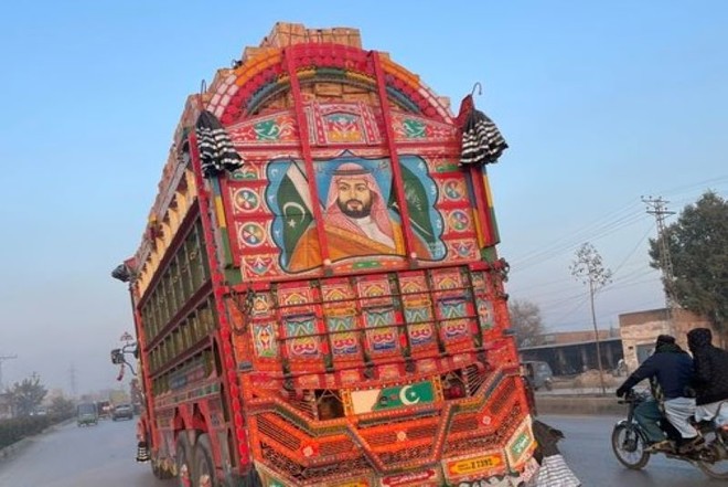 پاکستان کے صوبہ خیبر پختونخوا کے دارالحکومت پشاور میں ایک پاکستانی ٹرک ڈرائیور نے سعودی عوام اور ولی عہد شہزادہ محمد بن سلمان سے اپنی محبت کا اظہار کرتے ہوئے اپنے ٹرک پر ولی عہد کی تصویر لگائی ہے.