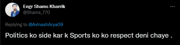 خود کو سپورٹس جرنلسٹ کے طور پر متعارف کرانے والے انڈین ٹویپ نے اویناش آریان کے خدشے کو درست مانا تو ہندی میں کی گئی ٹویٹ میں سنگین انجام کی نشاندہی کی۔