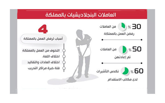 جدہ ..... 30فیصد بنگلہ دیشی گھریلو ملازماﺅں نے سعودی عرب میں ملازمت کا تربیتی کورس کرنے کے باوجود کام کرنے سے انکار کردیا۔انکا کہناہے کہ زبان اور رسم و رواج کی وجہ سے وہ سعودی عرب میں کام کرنے کی پوزیشن میں نہیں۔ریاض میں بنگلہ دیشی سفارتخانے کے ایک عہدیدار نے المدینہ اخبار کو یہ اطلاع دیتے ہوئے واضح کیا کہ اصل خرابی تربیتی مراکز میں ہے۔انکے پاس تجربہ نہیں ہے او رانکے پیش نظر صرف مالی منفعت ہے۔ بنگلہ دیشی حکومت جلد ہی نئے تربیتی مراکز اپنے یہاں قائم کریگی جہاں تربیتی کورس مکمل کراکر ہی بنگلہ دیشی ملازماﺅں کو سعودی عرب بھیجا جائیگا۔ کورس 30دن کے بجائے 90دن کا ہوگا۔