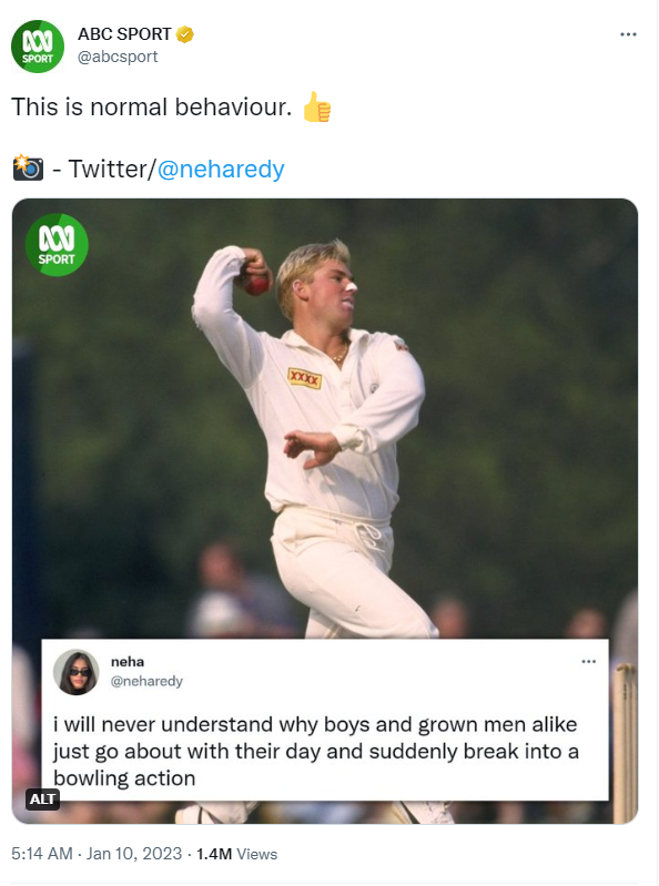 آسٹریلوی میڈیا اے بی سی سپورٹس نے اپنی ٹویٹ میں عظیم آسٹریلوی کرکٹر شین وارن کی تصویر شیئر کرتے ہوئے کہا کہ ’یہ عام سا رویہ ہوتا ہے۔‘
