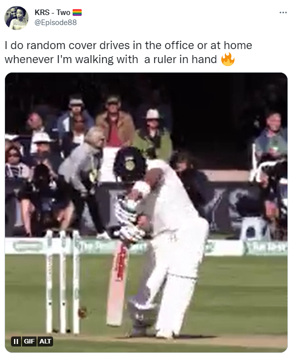 کے آر ایس ٹو لکھتے ہیں کہ ’جب دفتر میں یا گھر میں میرے ہاتھ میں فُٹ ہوتا ہے تو میں کور ڈرائیو مارتا رہتا ہوں۔‘