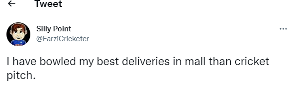 فرضی کرکٹر نے لکھا کہ ’میں نے اپنی زندگی کی بہترین گیندیں پِچ کی بجائے مال میں کروائی ہیں۔‘