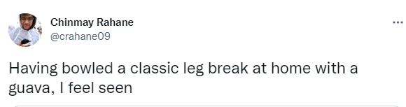 چِنمے راہانے نے ٹویٹ میں کہا کہ ’میں نے امرود سے کلاسک قسم کی لیگ بریک کروائی ہے۔‘