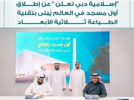 متحدہ عرب امارات دبئی میں اسلامی و فلاحی امور کے ادارے نے تھری ڈی پرنٹیڈ ٹیکنالوجی کی مدد سے دنیا کی پہلی مسجد تعمیر کرنے کا اعلان کیا ہے۔