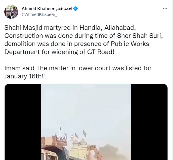 Uttar Pradesh's Prayagraj where the Shahi Masjid, which was obstructing the widening of the state highway has been demolished. This illegal mosque was built on Public Works Department (PWD) land. Nothing to do with Pakistani flag and religion.(2/3) pic.twitter.com/fAdGQUMv4x