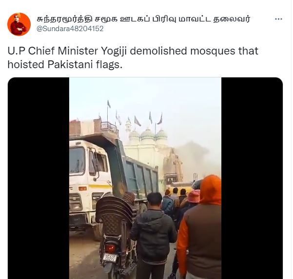کئی اور انڈین صارفین بھی یہی ویڈیو اس دعوے کے ساتھ شیئر کی اور لکھا کہ یہ مسجد اتر پردیش کے وزیر اعلیٰ یوگی ادتیاناتھ نے مسمار کروائی ہے۔