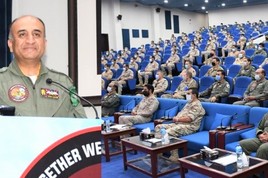 ایئر اینڈ گراؤنڈ کریو کے ساتھ گفتگو کرتے ہوئے انہوں نے کہا کہ ’موجودہ عالمی سلامتی کی صورت حال اور فضائی جنگ کے نئے ابھرتے ہوئے تصورات پاکستان اور دوست ممالک کے درمیان بہتر شراکت داری کے متقاضی ہیں۔