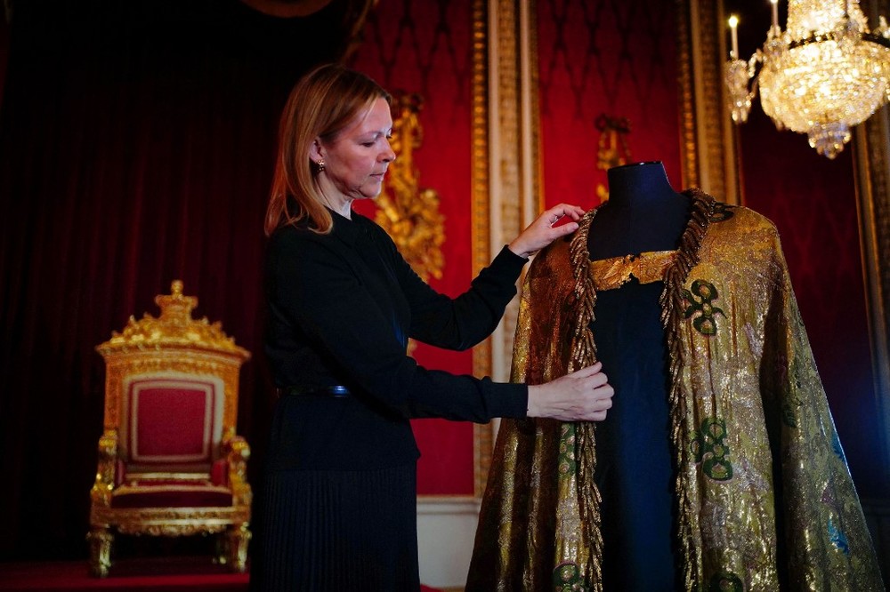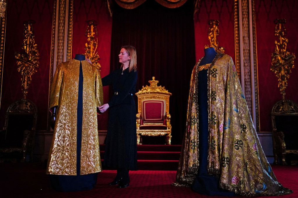 بکنگھم پیلس کے تھرون روم میں بادشاہ کا لباس رکھا گیا ہے۔ (اے ایف پی)