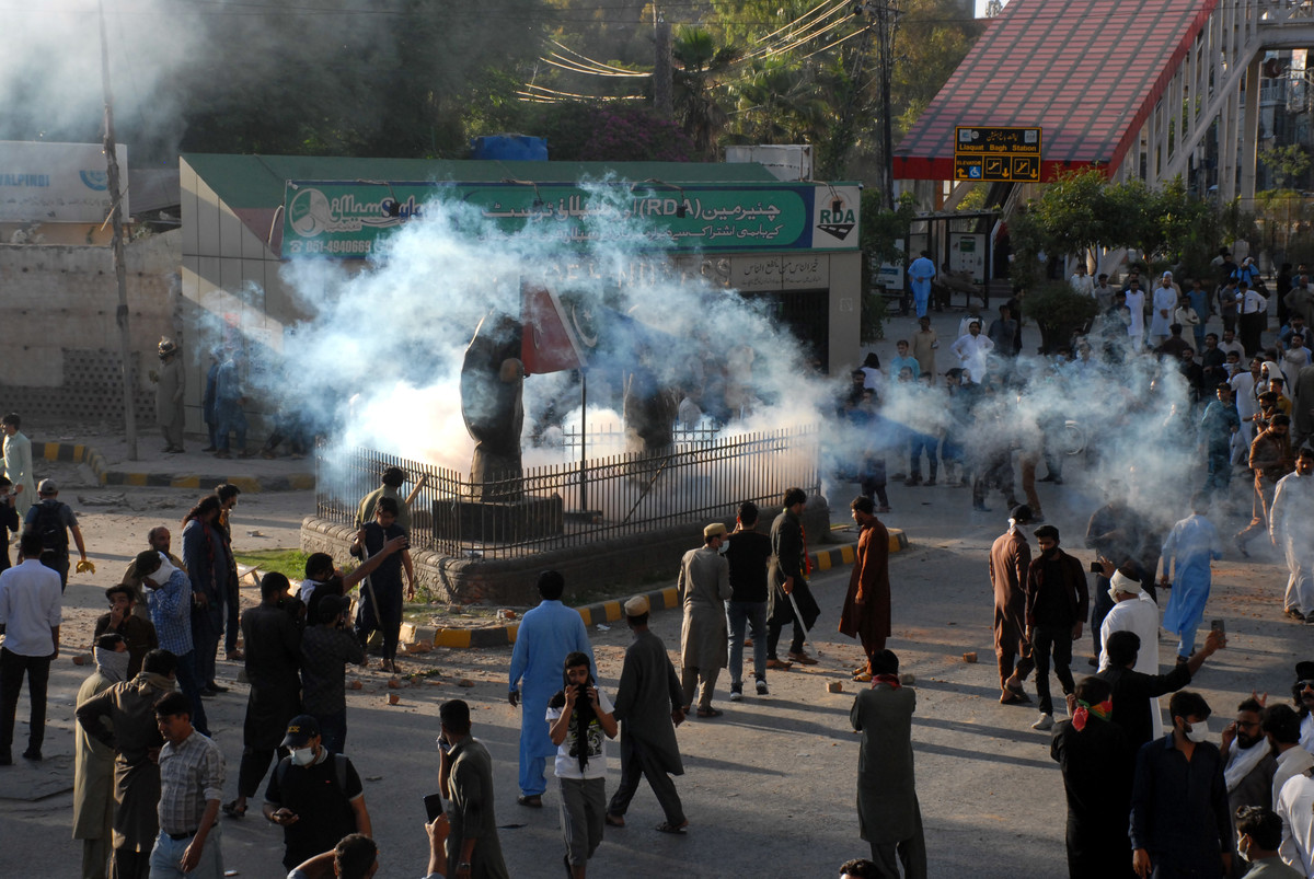 جی ایچ کیو کے سامنے تحریک انصاف کے تین سو سے زائد کارکنان جمع تھے (فوٹو: اے ایف پی)