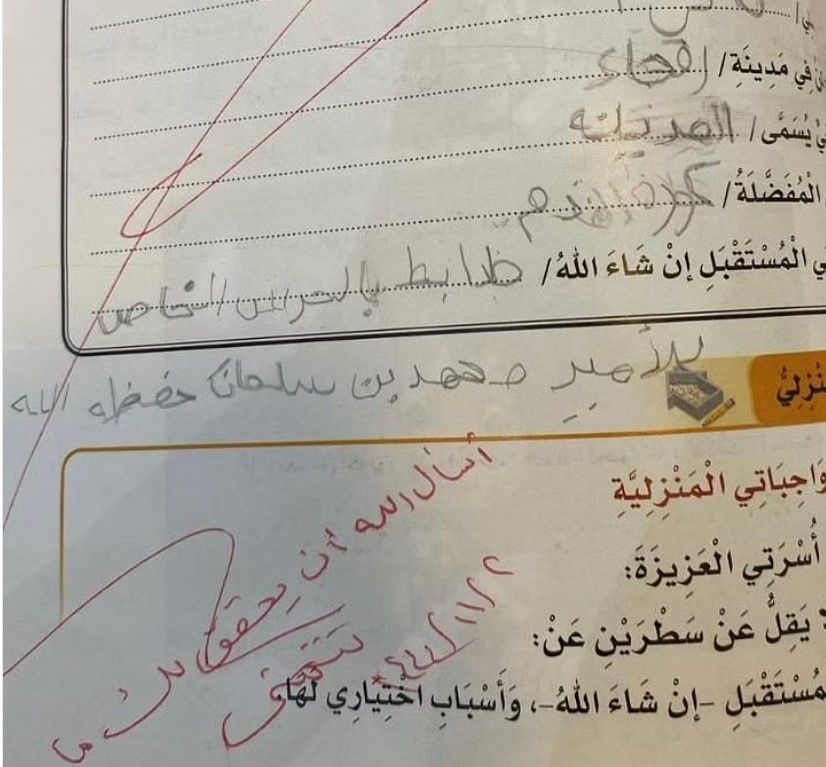 سعودی طالب علم نایف بن محمد الربع الشمری کا جواب دیکھ کر کلاس ٹیچر حیران رہ گئے۔