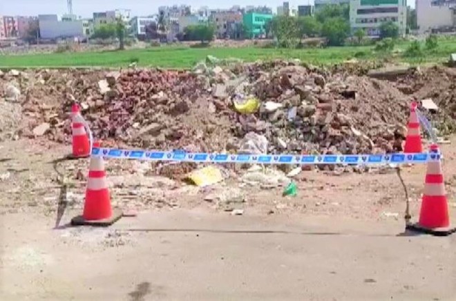 افضل نگر کمیونٹی ہال کے عقب میں کچرے کے ڈھیر سے خاتون کا سر کالے رنگ کے کور میں ملا۔ (فوٹو: اے این آئی)