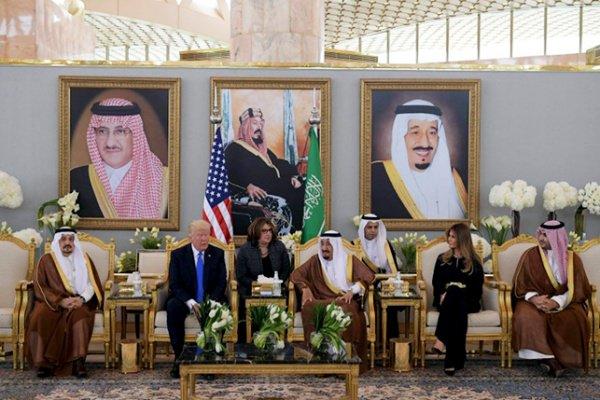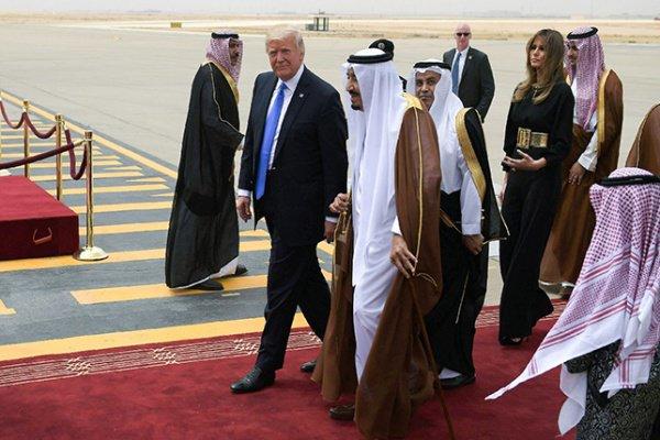 ریاض: امریکی صدر ڈونلڈ ٹرمپ اپنے پہلے غیرملکی دورے پر ریاض پہنچ گئے۔کنگ خالد انٹر نیشنل ایئرپورٹ پر خادم حرمین شریفین شاہ سلمان بن عبد العزیز نے ان کا استقبال کیا۔ امریکی صدر کے وفد میں خاتون اول میلانیا، صاحبزادی ایوانکا اور مشیروں کے علاوہ وزراءاور میڈیا ٹیم ہمراہ تھے۔ امریکی صدر دو روزہ دورے پر ریاض میں شاہ سلمان کے ساتھ مذاکرات کریں گے۔ بعد ازاں اسلامی ممالک کے سربراہ کانفرنس میں شریک ہوں گے اور جی سی سی ممالک کے سربراہوں کے ساتھ بھی ملاقات کریں گے۔