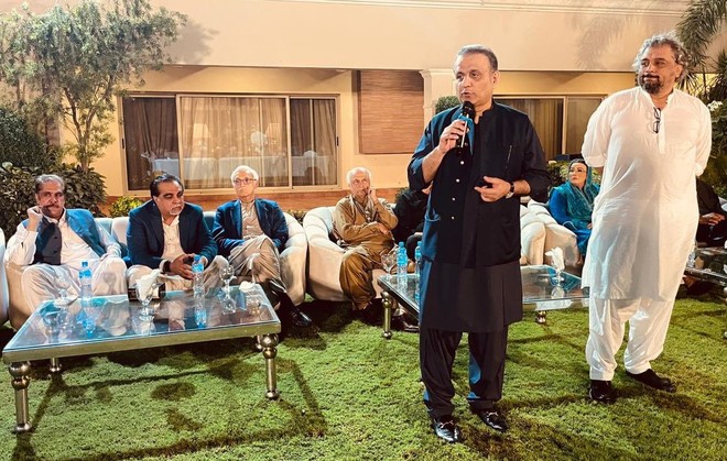 عشائیے سے خطاب کرتے ہوئے پی ٹی آئی سندھ کے سابق صدر اور وفاقی وزیر علی زیدی نے علیم خان کا شکریہ ادا کرتے ہوئے کہا کہ ’جو 9 مئی کو ہوا میرا نہیں خیال کہ پی ٹی آئی کبھی اس کے لیے بنی تھی۔‘