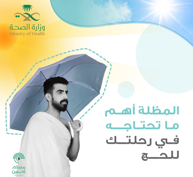 وزارت نے ٹوئٹر پر بیان میں کہا کہ ’عازمین حج سن سٹروک سے بچیں اور سڑک پر نکلنے سے قبل ہلکے رنگ کی چھتری ضرور استعمال کریں‘۔