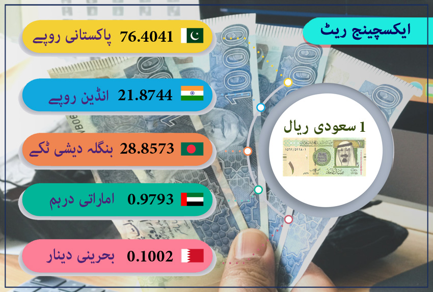 سعودی عرب کے مختلف ٹرانزیکشن سینٹرز کے مطابق جمعہ 30 جون 2023 کو سعودی ریال کا ایکسچینج ریٹ ذیل میں درج کیا گیا ہے۔