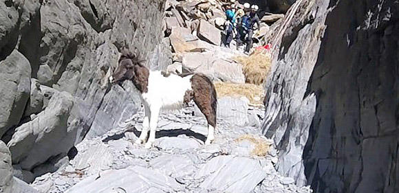 ویسٹ ویلز.... گھوڑوں اور گدھوں کی مشترکہ نسل سے امکانی تعلق کے حامل خچر دنیا بھر میں خطرناک اور دشوار گزار راستوں پر مال گزاری کیلئے استعمال ہوتے رہے ہیں اور یہ خچر اتنے سعادت مند ہوتے ہیں کہ اپنے کام سے رو گردانی نہیں کرتے اور اسی وجہ سے انکی جان مصیبت میں پھنس جاتی ہے۔ گزشتہ دنوں مقامی ساحلی علاقے میں ایک ایسا ہی خچر پہاڑی چھجے کے نیچے اس صورت میں پھنس گیا کہ وہاں سے نکلنے کیلئے کوئی راستہ نہیں رہ گیا تھا۔ اطلاعات کے مطابق علاقے میں کام کرنے والی فورس کے 13افسران نے بھورے رنگ کے اس پونی کو اس تنگ پہاڑی درہ نما جگہ میں گھسا دیا تھا کہ پھر اسے چھوڑ کر چلے گئے تھے۔قریب ہی سمندر سے گزرنے والی کشتی پر سوار امدادی ٹیم نے دور سے اس خچر کو پریشان حالت میں دیکھا اور اسکی مدد کو پہنچے اور اسکی جان بچالی گئی۔ ماہرین کا کہناہے کہ اگر اسے مزید آدھے گھنٹے تک اس جگہ رہنا پڑ جاتا تو اسکا ہلاک ہونا یقینی تھا۔اس جگہ سے نکالنے کے بعد خچر کو بذریعہ ہیلی کاپٹر جانوروں کے اسپتال پہنچا دیا گیا جہاں اب اسکی حالت بہتر بتائی جاتی ہے۔