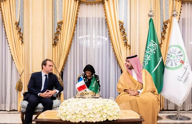 سعودی وزیردفاع شہزادہ خالد بن سلمان بن عبدالعزیز سے ریاض میں فرانس کے مسلح افواج کے وزیر سیبسٹین لیکورنو نے ملاقات کی۔
