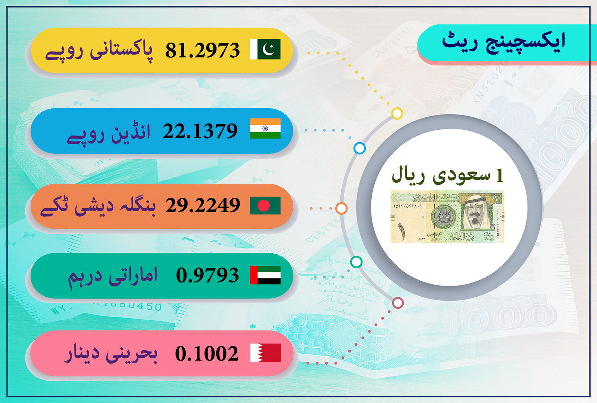 سعودی عرب کے مختلف ٹرانزیکشن سینٹرز کے مطابق اتوار 10 ستمبر 2023 کو سعودی ریال کا ایکسچینج ریٹ ذیل میں درج کیا گیا ہے۔