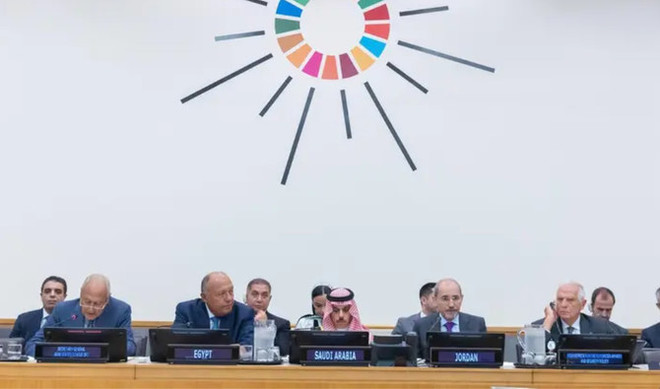 سعودی وزیر خارجہ شہزادہ فیصل بن فرحان نے ایک اجلاس کی مشترکہ صدارت کی جس میں عرب لیگ کے سیکریٹری جنرل احمد ابو الغیط ، یورپی یونین کے اعلیٰ نمائندے برائے خارجہ امور اور سلامتی کی پالیسی جوزپ بوریل، اُردن کے نائب وزیراعظم اور وزیر خارجہ ایمن صفادی، اور مصر کے وزیر خارجہ سامح شکری بھی شامل تھے۔