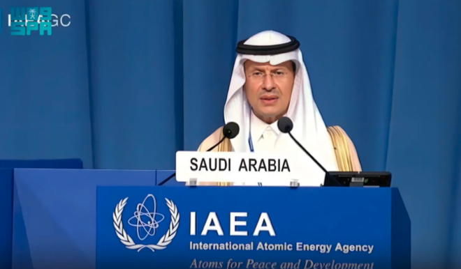 ایس پی اے اور عرب نیوز کے مطابق شہزادہ عبدالعزیز بن سلمان نے پیر کو ویانا میں ایٹمی توانائی کی جنرل کانگریس کے67 ویں سیشن کے اجلاس سے خطاب کیا۔