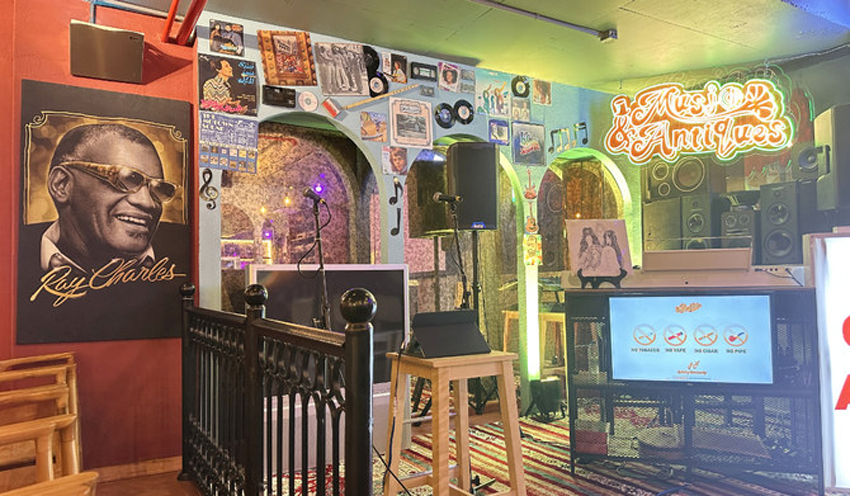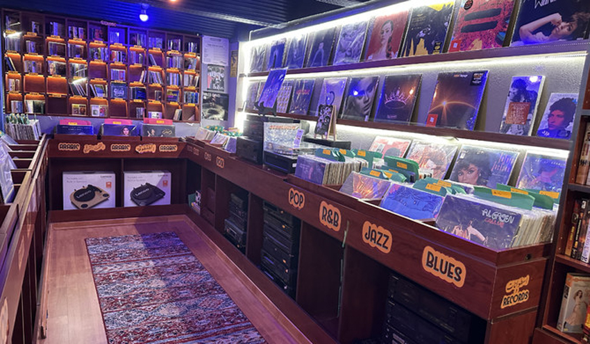 یہاں موجود میوزیک ریکارڈز کی ایک وسیع رینج کی نمائش کرتے ہوئے لکڑی کے بنے شیلف اس ماحول میں تاریخی اہمیت پیش کرتے ہیں۔