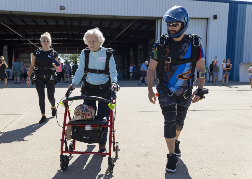 ڈوروتھی ہافنر ویسے تو واکر کے سہارے چلتی ہیں لیکن وہ اس سے پہلے بھی سکائی ڈائیونگ کر چکی ہیں۔