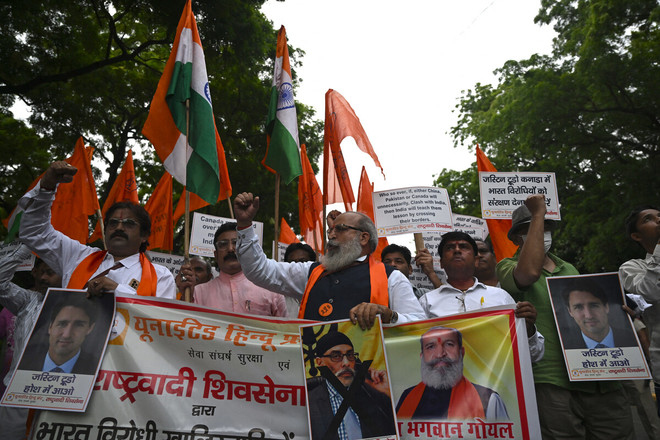 حالیہ دنوں میں انڈیا میں کینیڈین حکومت کے خلاف احتجاجی مظاہرے بھی ہوئے۔ (فوٹو: اے ایف پی)