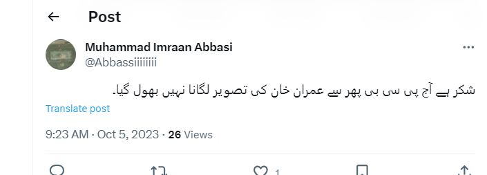 محمد عمران عباسی کا کہنا تھا کہ ’ شکر ہے آج پی سی بی پھر سے عمران خان کی تصویر لگانا نہیں بھول گیا۔‘