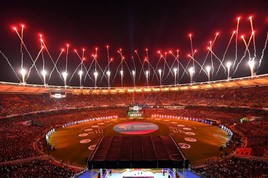 احمدآباد کے نریندر مودی سٹیڈیم میں 1 لاکھ 32 ہزار شائقین کرکٹ کے بیٹھنے کی جگہ ہے۔